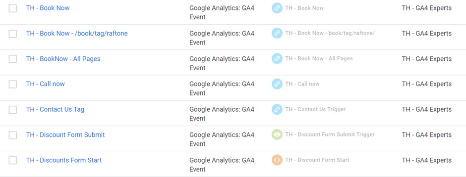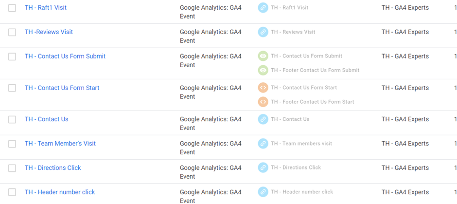 We kicked off our Implementation Phase by creating a new Google Analytics 4 (GA4) account for RaftOne and integrated it with Google Tag Manager (GTM). Within GTM, we configured events to track form submissions and CTA button clicks.